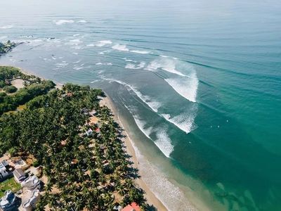Your Dream Home with a turn-key rental suite in Playa La Saladita awaits. Conveniently located a stones throw away from the paddle out spot of Saladitas long left point break wave. This stunning 1,800 sqft 4 bedroom and 3 bathroom home is the perfect spot to make your surf lifestyle come true. You’ll love the upper/lower duplex style layout with separate entrances. Each floor featuring 2 fully enclosed 2 br, 1ba suites, both with open concept kitchens and living rooms. Enjoy looking out over the mature gardens while catching an ocean glimpse of the breaking waves from the upper suite. You'll find wood texture tile flooring throughout both suites and luxurious parota hard wood closets and cabinets. The spacious kitchens feature granite countertops, gas stoves, full size fridges and parota wood bifold bar doors that open up onto the expansive covered patios. The bathrooms also feature granite countertops with parota wood shelves and local custom rock sinks with high end helvex faucets and taps. The artistically laid mosaic rock showers feature an open concept vibe with strong pressurized water. There are 4 maintained, well working AC units (2 on each floor). After your surf session, hang your boards on the built in surf racks and enjoy a nice open aired shower in a private garden setting. The hammock cabina located next to the shower is the perfect afternoon siesta spot to unwind and soak up the peace and tranquility in the mature jungle like gardens. The entire 730 M2 property is surrounded by 8 foot finished aplandoed and painted concrete walls softened by a luscious mix of low maintenance trees and shrubs. The solid metal garage doors and gate have been meticulously maintained and provide privacy and security. There is a large custom built charcoal BBQ with a built in hand sink and preparation counter area. The house is equipped with a large American standard septic system with 2 chambered septic tank with distribution box and an extensive septic field in place. System has been designed to separate black water and grey water with the ability to use the grey water as a supplementary irrigation system in the dry season or during high demands. The house has a consistent pressurized water system and was plumbed with high pressure fused weld piping (tubo plus). The house foundation and structural materials were installed to accommodate a 3rd story. Currently the rooftop is an open aired lookout with plumbing rough-ins already in place and awaiting your ideas. The house includes all furnishings and applicances: